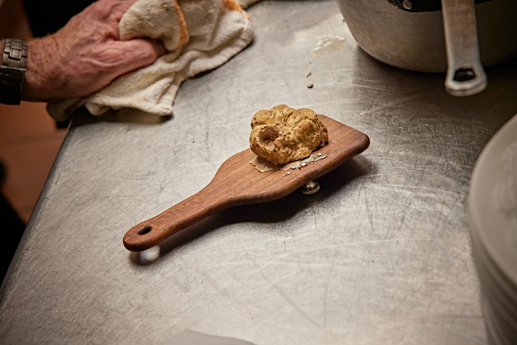 Braised leek bruschetta with 48-month aged parmigiano gratinate, shaved white Alba truffle